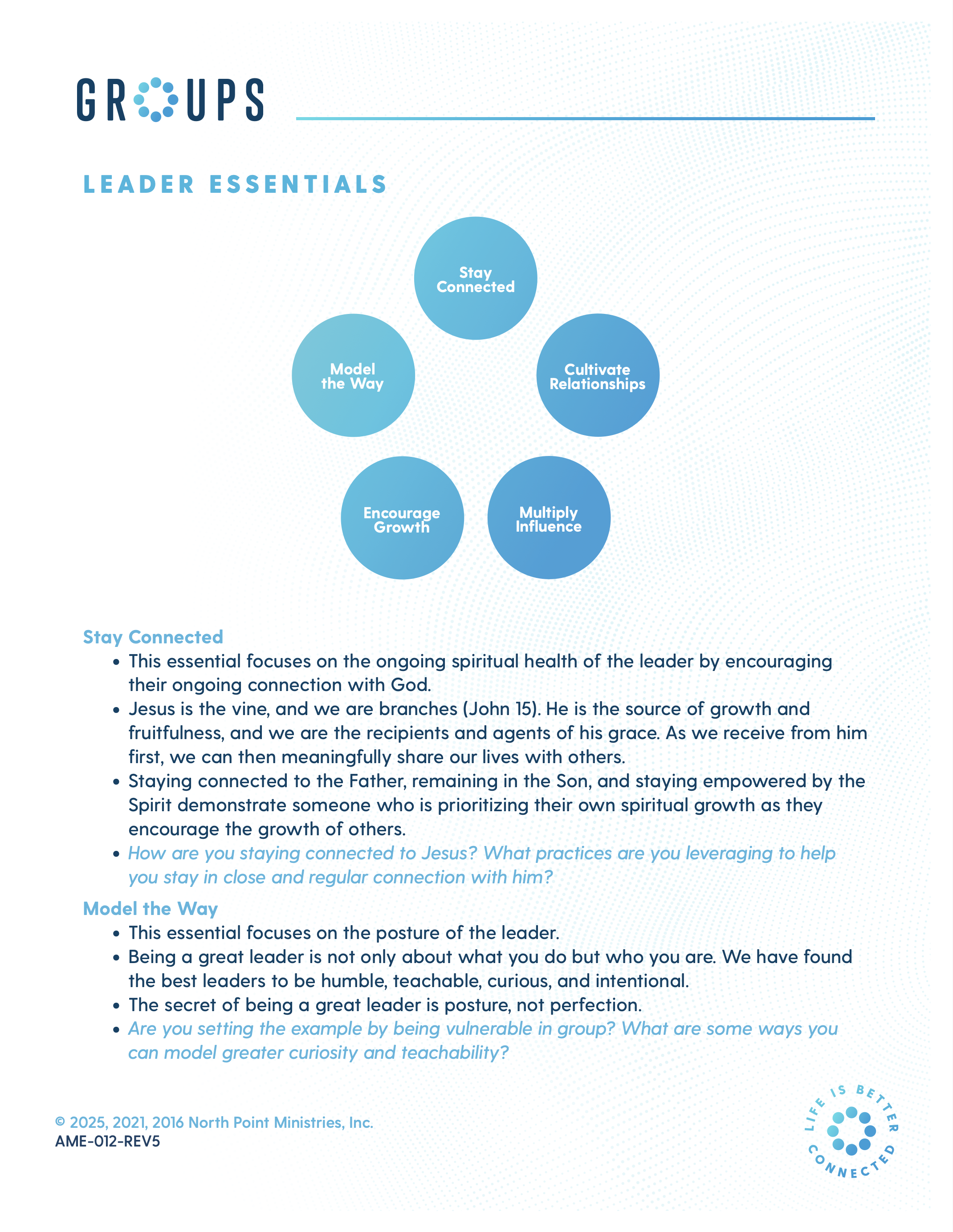 We have discovered there are five essentials for leaders and this document provides an overview.